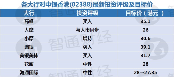 三、各大行对中银香港(02388)最新投资评级及目标价