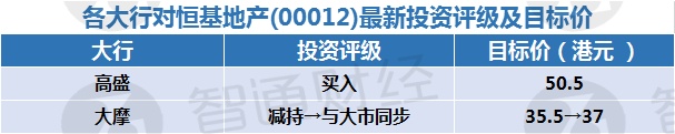 五、各大行对恒基地产(00012)最新投资评级及目标价