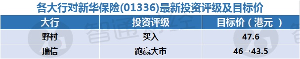 六、各大行对新华保险(01336)最新投资评级及目标价