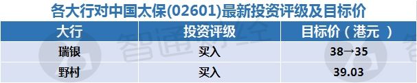 七、各大行对中国太保(02601)最新投资评级及目标价