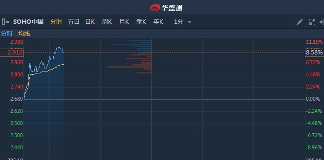 智通财经APP获悉,SOHO中国(00410)获星展看高至3.64港元,评级升至“买入”,截至10时15分,涨8.58%,报价2.91港元,成交额5874万。
