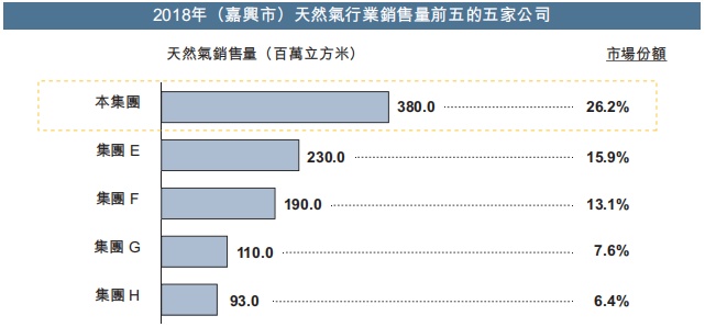 在能源结构转变的大背景下,给专门经营天然气的公司不少发展机会,尤其是地区性的龙头公司,嘉兴燃气集团就是这样一家地区性天然气龙头公司。该公司的天然气销售规模在浙江省排名第五,在嘉兴市排名第一,占比26.2%,远超第二名和第三名。