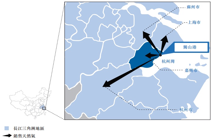 独山港地理位置优越,位于长三角核心区域,毗邻上海、位于杭州湾以南。该位置可通过海运及内河运输成交大型物流港,进行贸易活动,进而支撑国际和国内的大量天然气贸易活动。