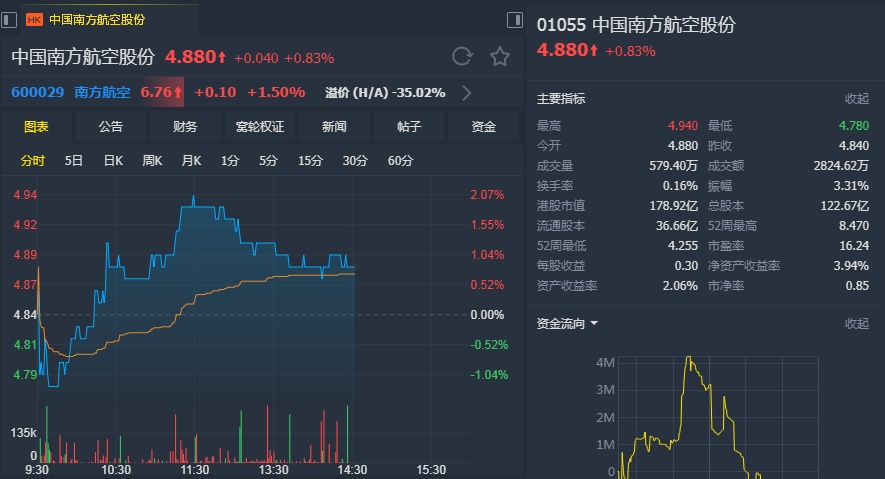 智通财经APP获悉,大和发布报告称,昨日与中国南方航空(01055)进行电话会议,其管理层指出,在今年第三季净收益同比升逾10%,但乘客收益率却有所下降,而今年第四季和明年的不明朗因素也正在增加,将南航目标价由8港元,减35%至5.2港元,维持“持有”投资评级。