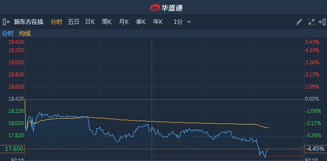 港股异动︱新东方在线(01797)高位回撤跌超4% 此前五连阳累涨近30%