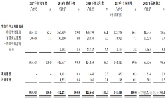 虽然时时服务在招股书中划分了5个业务,不过主要收入都来自物业管理服务和单独保安服务,并且把这两个业务分到了物业管理及相关服务中。仔细看可以发现,2018财年和2019财年的物业管理及相关服务收入同比增长均为3.6%左右。而根据弗若斯特沙利文的研究报告,相关物业管理市场2014年至2018年的年复合增长率为5%。