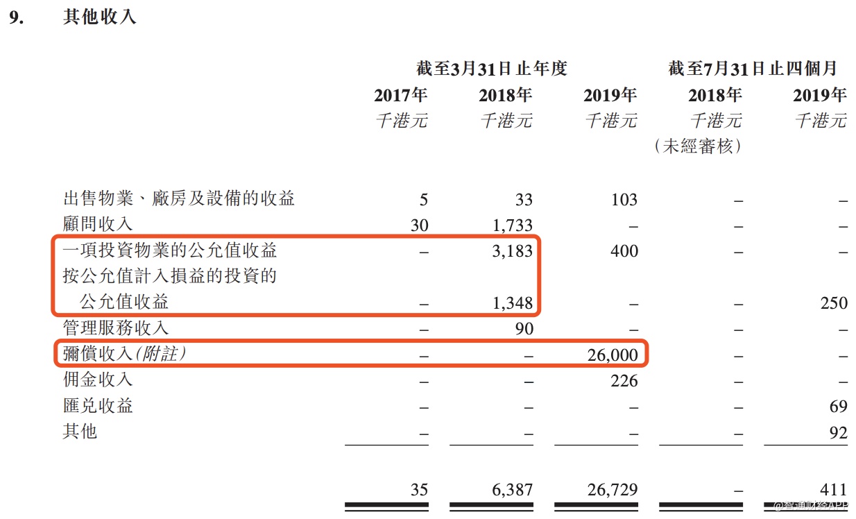 在2019财年确定All Profit不能完成对赌协议的业绩要求,因此赔偿2600万港元。然而这笔收入是一次性收入,并且这笔弥偿收入也说明了时时服务的投资失败。