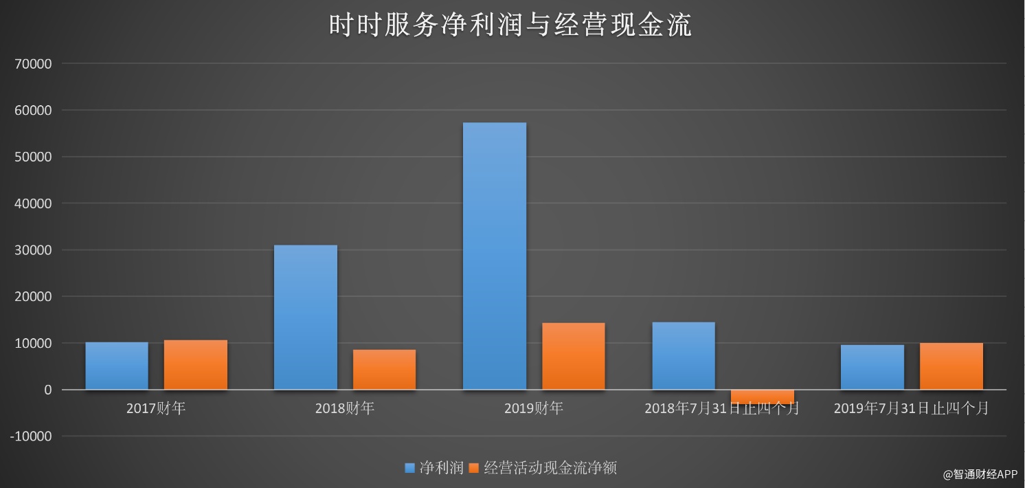 这么多一次性收入影响净利润,净利润含金量自然不高。时时服务的经营活动现金流常常低于净利润,只有2019年7月31日止四个月才稍微比净利润大一点。