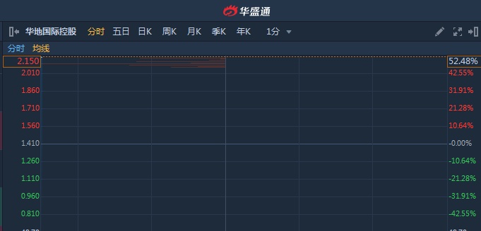 智通财经APP获悉,华地国际控股(01700)获主席陈建强溢价63.1%提私有化,今日复牌,早盘大幅高开,截至9时30分,涨51.77%,报价2.14港元,成交额190.8万。