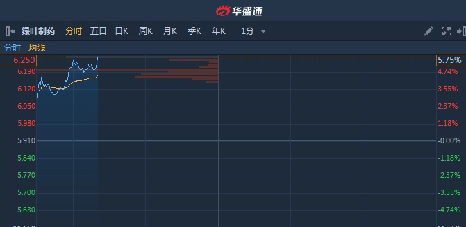 智通财经APP获悉,绿叶制药(02186)早间公告称,抗精神分裂药Rykindo®生产基地成功通过美国FDA首次PAI检查。受消息刺激,早盘延续涨势,截至10时19分,涨5.58%,报价6.24港元,成交额9022万。