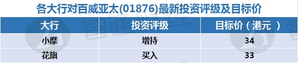 三、各大行对百威亚太(01876)最新投资评级及目标价