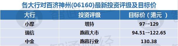 四、各大行对百济神州(06160)最新投资评级及目标价