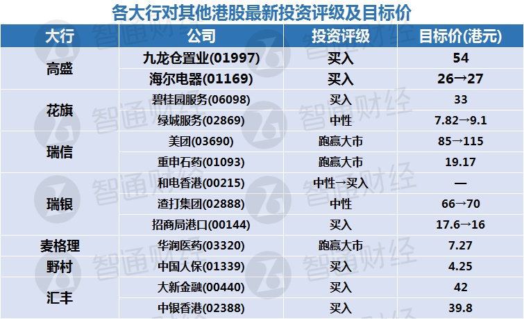 五、各大行对上海医药(02607)最新投资评级及目标价