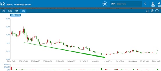 在股价方面,公司自2010年10月上市后仅维持了几个月的上行态势,于2011年7月打出公司历史峰值的101亿港元市值后便一路下滑,至2016年公司低谷时期市值不到15亿港元,跌幅超过80%。股价截止2019年公司获得私有化要约时虽有部分回升,但停牌当日市值也仅为27.8亿港元,对应动态市盈率5倍多,市净率还不到0.5倍。