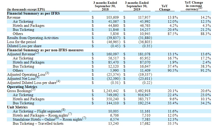 财报显示,MMYT在非GAAP下第三季度总收入为1.81亿美元,同比增长13.1%。其中来自机票的营业收入为8700万美元,占据总收入的48%。经调整后,本季度MMYT的净亏损为2361万美元,去年同期为3239万美元。摊薄后每股净亏损0.22美元。