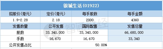 智通财经APP获悉,11月5日,银城生活(01922)配售结束。配售招股价区间为1.9-2.28港元,最终定价2.18港元,每手4360港元。