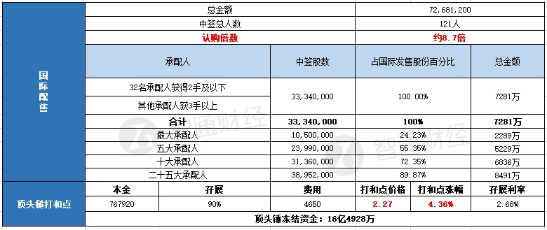 国际配售申购人数未披露,认购倍数约8.7倍。