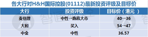 三、各大行对H&H国际控股(01112)最新投资评级及目标价