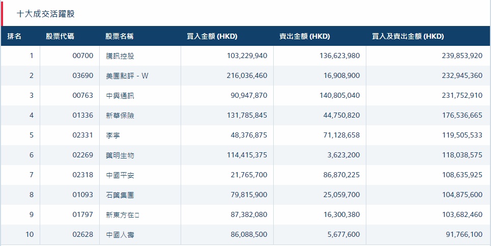 此外,北水主要沽售舜宇光学(02382)、中兴通讯(00763),净卖出额分别为6888万、4985万港元。