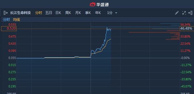 智通财经APP获悉,长江生命科技(00775)午后放量急升,一度高见0.53港元,创逾52周新高,截至13时40分,涨46.48%,报价0.52港元,成交额1343万。