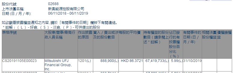 智通财经APP获悉,联交所最新资料显示,10月31日,三菱日联金融集团减持新奥能源(02688)88.89万股,每股作价86.37港元,总金额约为7677.42万港元。减持后最新持股数目约为6741.97万股,最新持股比例为5.99%。