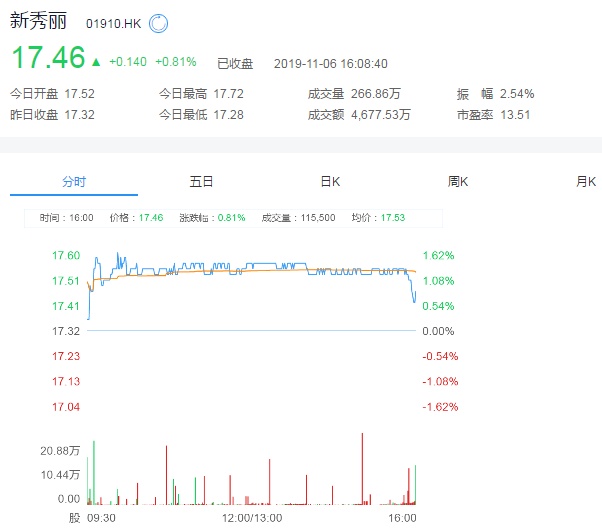 截至今日收盘,新秀丽涨0.81%,报17.46港元。