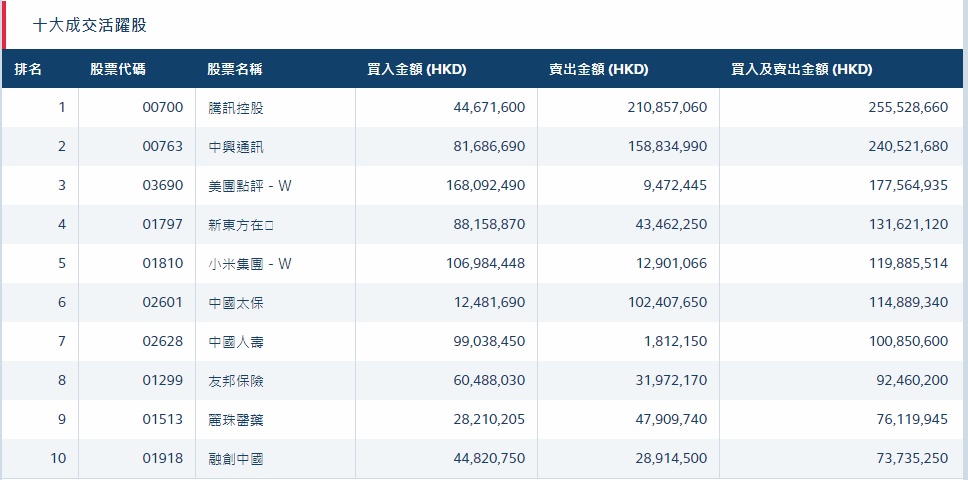 新东方在线(01797)、友邦保险(01299)分别获4469万、2851万港元。此外,北水主要沽售丽珠医药(01513)、中兴通讯(00763),净卖出额分别为1969万、7714万港元。