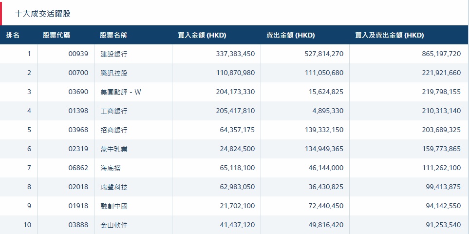 智通财经APP获悉,11月6日港股市场,北水净流入9900万。北水净买入最多的个股分别是美团点评-W(03690)、工商银行(01398)、中国人寿(02628),净卖出最多的个股分别是建设银行(00939)、蒙牛乳业(02319)、中国太保(02601)。