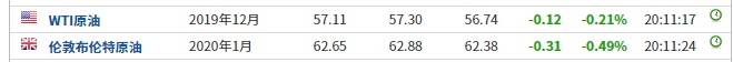 因美国原油库存超预期增长,国际油价走低。截止发稿,WTI原油跌0.21%,报57.11美元/桶。布伦特原油跌0.49%,报62.65美元/桶。