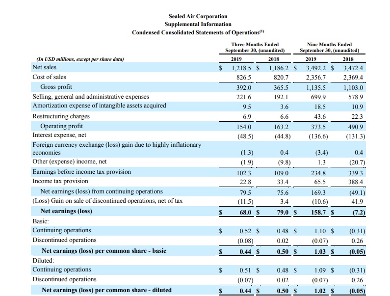 智通财经APP获悉,美东时间11月6日美股盘前,希悦尔包装(SEE.US)公布了2019年第三季度财报。报告显示,希悦尔本季度的销售收入为12亿美元,去年同期为11.8亿美元。