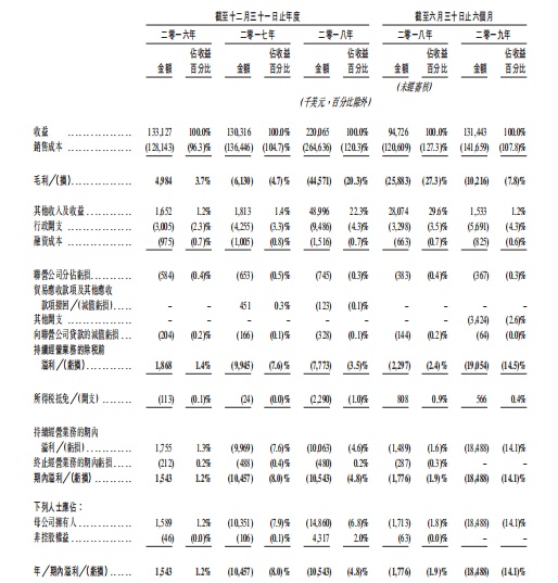 于2016年,毛利为498.4万美元,于2017至2018年,毛损分别为613万美元及4457.1万美元。毛损由截至2018年6月30日止6个月的2588.3万美元减少60.5%至2019年同期的1021.6万美元。