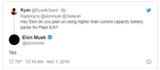 尽管马斯克还没有讨论未来电池容量增加的具体细节,但更大容量的电池组不仅可以提高日常驾驶的续航里程,还能支持特斯拉Plaid模式动力总成输出更高的功率。