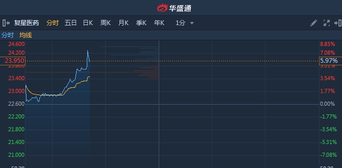 截至10时41分,涨5.97%,报价23.95港元,成交额9391万。