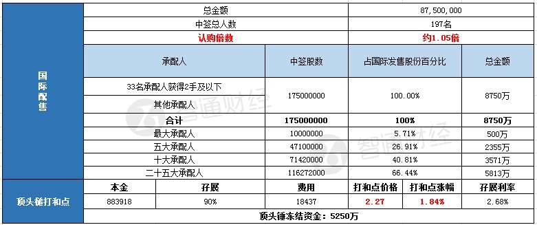 国际配售申购人数未披露,认购倍数约1.05倍。