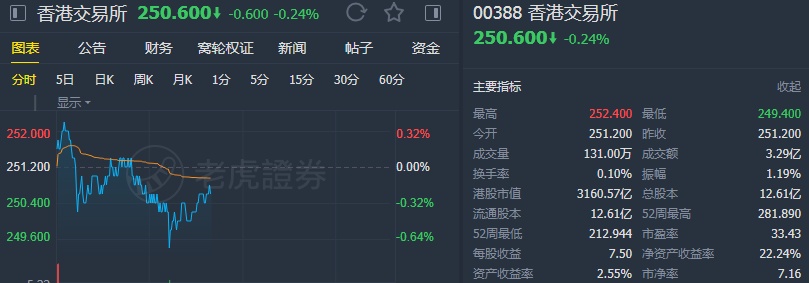 该行表示,将港交所目标价由240港元升至250港元,认为估值合理,维持“中性”评级。