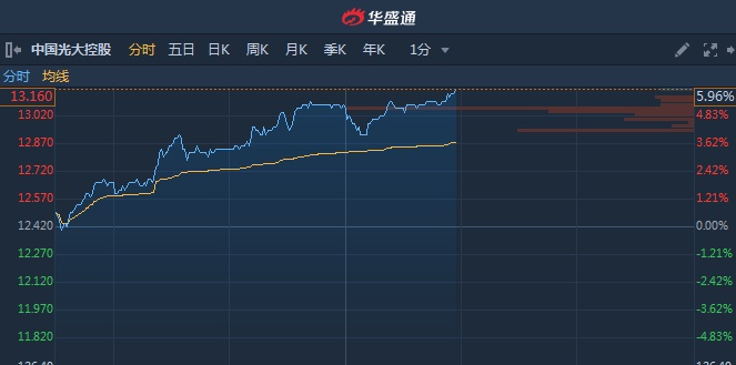 智通财经APP获悉,中国光大控股(00165)近日与Investcorp签署新经济战略深化合作协议。该股今日涨幅持续扩大,盘中高见13.18港元创半年新高。截至13时56分,涨5.96%,报价13.16港元,成交额1.199亿。