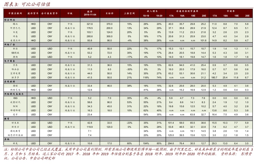 尽管搜狗 3Q19 收入好于预期,但宏观经济疲软、广告市场竞争的激烈等结构性因素或将持续影响公司广告业务。公司的 4 季度收入指引较为疲弱,这主要是因为:1)游戏行业和互联网金融行业相继出台政策新规,而这两个行业的广告主是搜狗搜索广告业务的重要客户;2)抖音等大型流量平台持续分流广告主预算。