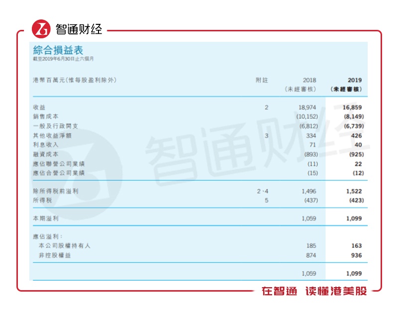 不过流动通讯产品销售带动香港电讯业务营收下滑11%的同时,香港电讯的销售成本较去年同期大幅下降22%至69.50亿元,所以上半年的香港电讯的毛利率同比增长6个百分点至54%。再加上行政开支同比减少加上其他收益的增加,公司税前利润实现同比1.7%增长至15.22亿元,上半年净利润同比增长3.8%至10.99亿元,虽然由于非控股权益分走了更多的利润,使得股东应占利润出现下滑,但公司整体盈利能力并不悲观。