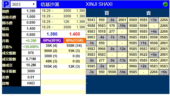 智通财经APP获悉,信基沙溪(03603)将于11月8日挂牌,今日暗盘开盘大涨,截至收盘,辉立证券暗盘交易显示其报价1.39港元,较招股价1港元涨39%。每手3000股,不计手续费,每手赚1170港元。