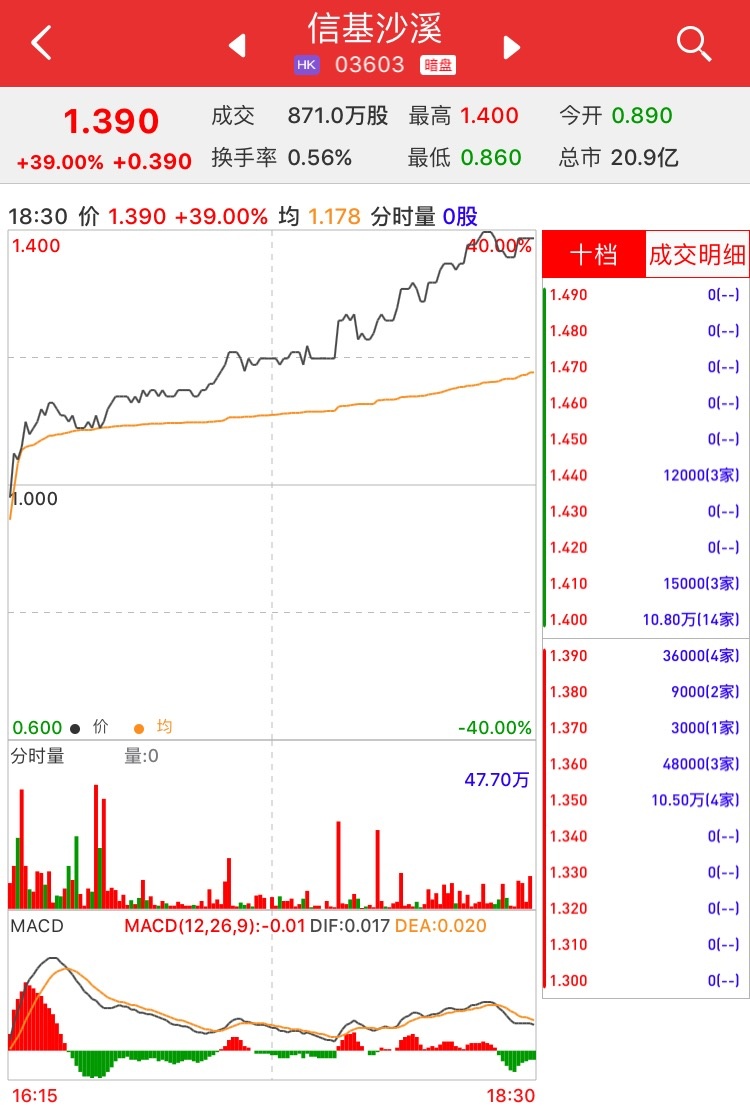 另据利弗莫尔证券资料显示,暗盘收报1.39港元,涨39%。