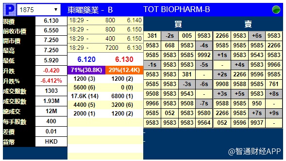 智通财经APP获悉,东曜药业-B(01875)将于11月8日挂牌。上市前夕,辉立证券暗盘交易显示其收报6.13港元,较招股价6.55港元跌6.412%,每手计为400股。