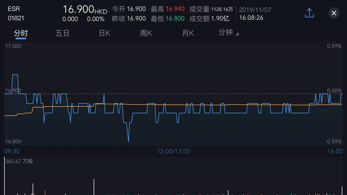 截至今日收盘,ESR(01821)无涨跌,报16.9港元