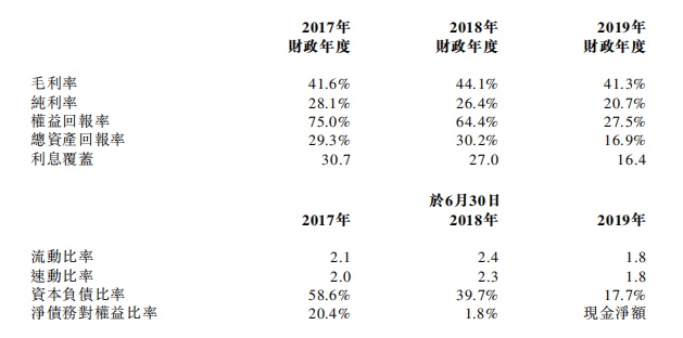 整体毛利率由2017年财政年度的41.6%增加至2018年财政年度的44.1%,此主要由于来自管理服务的收益增加,于2018年财政年度的利润率高所致。毛利率随后减少至2019年财政年度41.3%。