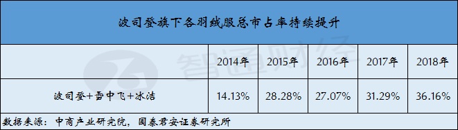 2017年的波司登,已露出蓄势待发的端倪,其市场占有率从2014年的14.13%,大幅提升至31.29%,走出了前一年下滑的谷底,为2018年冲高至36.16%打下了基础。