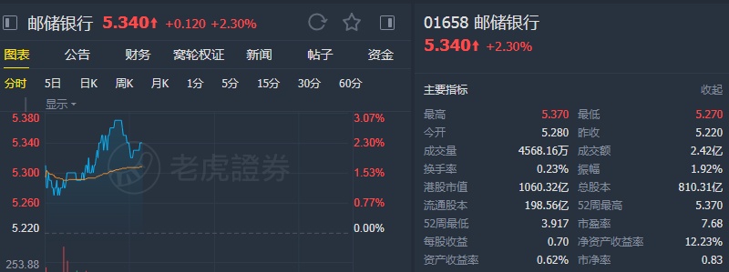 智通财经APP获悉,高盛发布报告称,相信对邮储行(01658)有利的两个因素将会持续,其一为邮储行零售银行业务改善,提供强劲增长机会,因其贷存比率仍低,资产质素也有大量缓衝,资本水平也充足。另外银行间利率低企也已于现价反映,邮储行股价已自其去年第二季高位回落约7%。