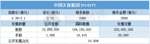智通财经APP获悉,11月8日,中国天保集团(01427)配售结束。配售招股价区间为2.39-3.1港元,最终定价2.5港元,每手2500港元。