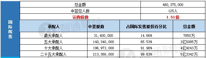 国际配售申购人数125人,认购倍数1.51倍。