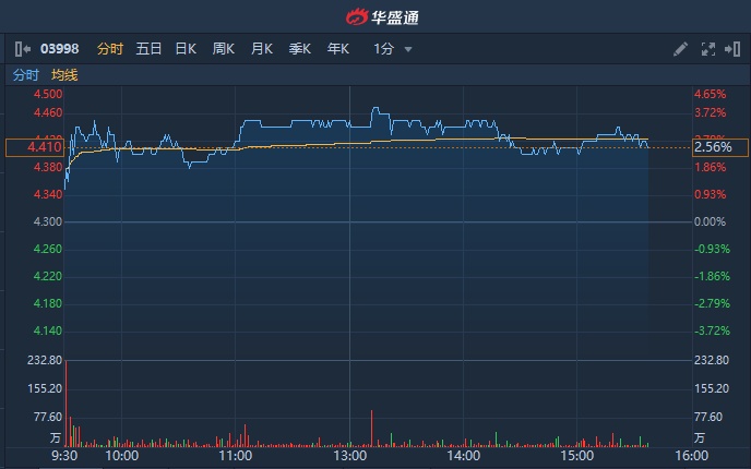 智通财经APP获悉,波司登(03998)股价持续攀升,股价盘中高见4.48港元,继续刷新历史新高。截至发稿,涨2.79%,报4.42港元,成交额1.13亿港元。