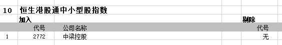 恒生港股通中小型股指数将纳入中梁控股(02772)。