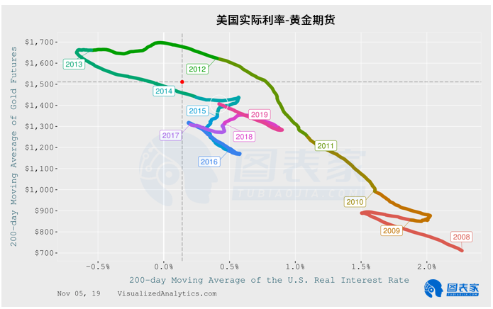 分析师Oleh Kombaiev指出,黄金价格是美国实际利率的镜像。通过平滑短期波动来展示黄金和美国实际利率的长期动态关系,很容易证明这一点。